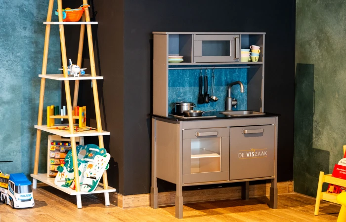 We hebben aan iedereen gedacht! Voor de kleintjes hebben we een speelhoek ingericht, zodat kinderen zich kunnen vermaken terwijl ouders in alle rust kunnen winkelen, werken of ontspannen. Zo wordt een bezoek aan De Viszaak leuk voor het hele gezin.